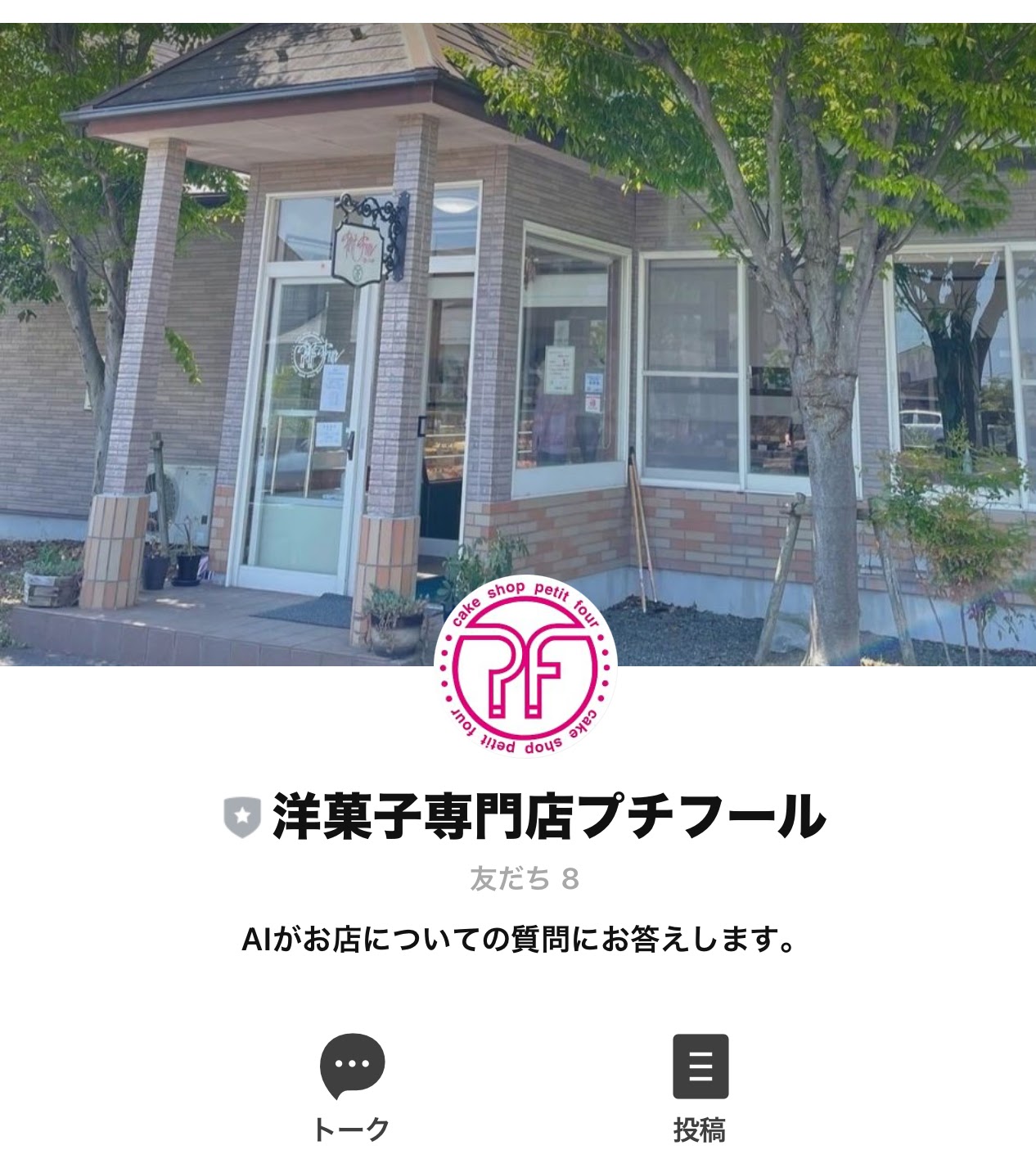 ↓洋菓子専門店プチフール AIチャットボット(LINE)
